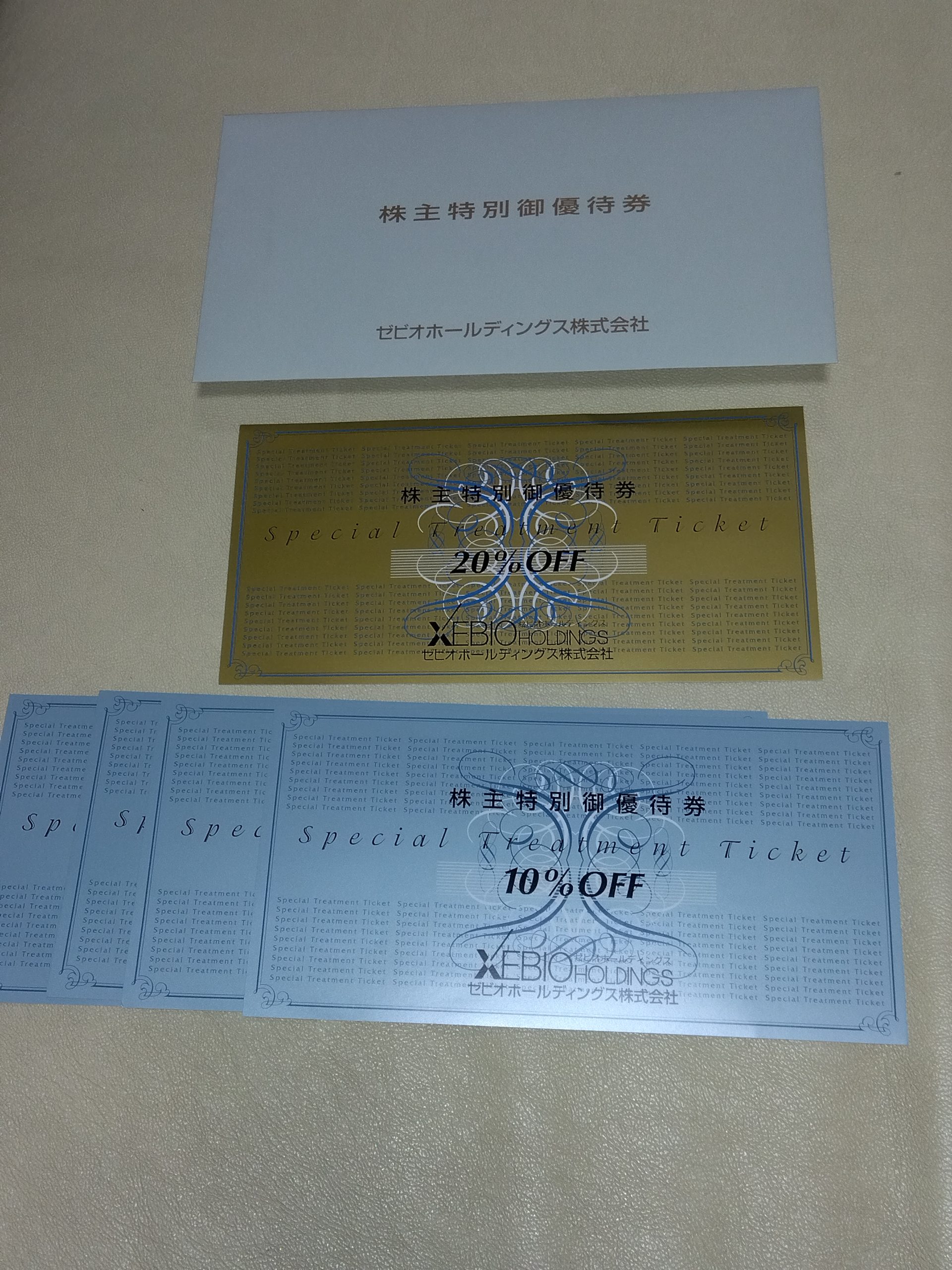 100株の保有なので、20%OFF券が1枚、10%OFF券が4枚です。