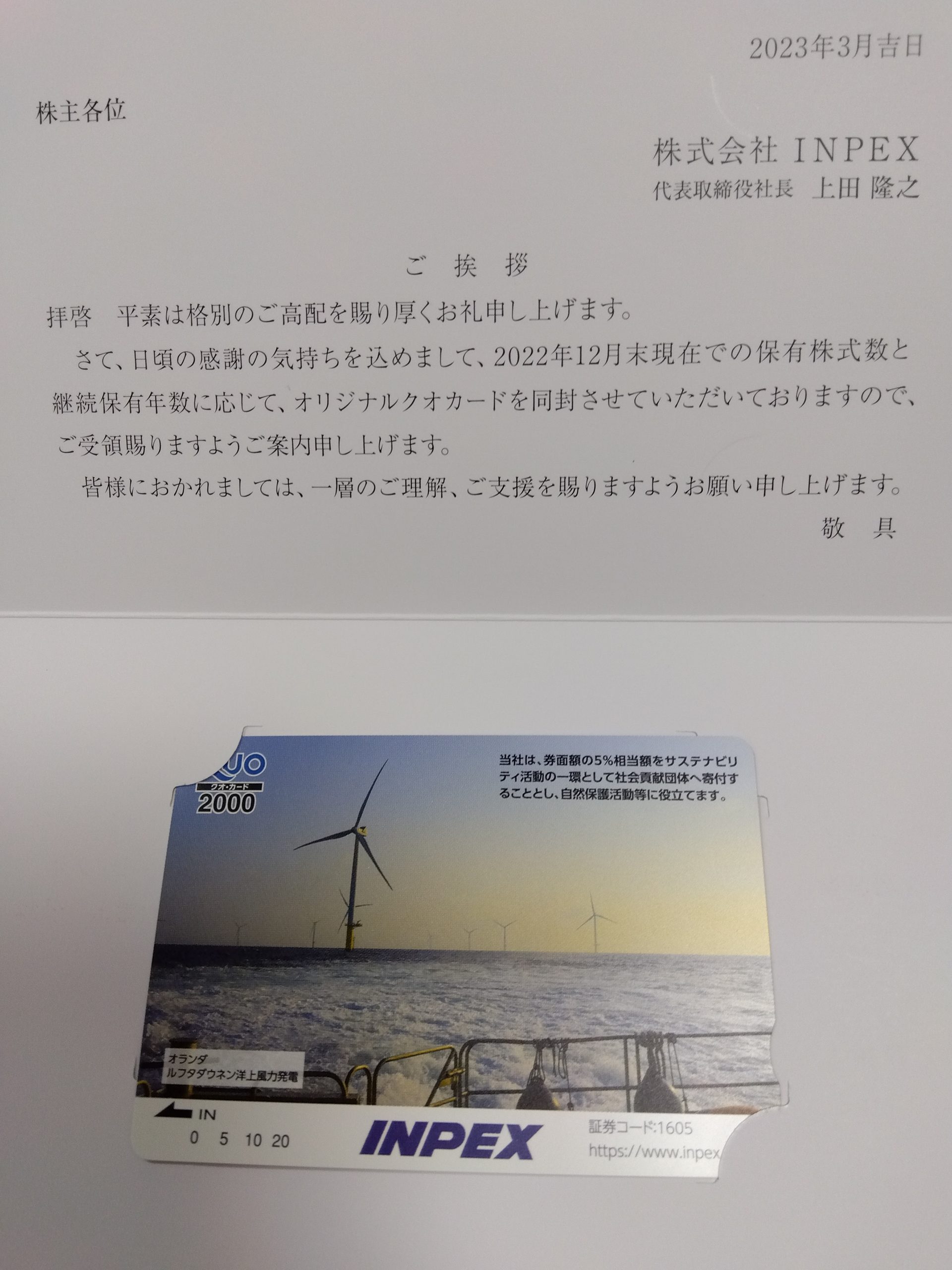 株主優待12月確定2023/3/30、株主優待のQUOカード2,000円分を頂きました!!
