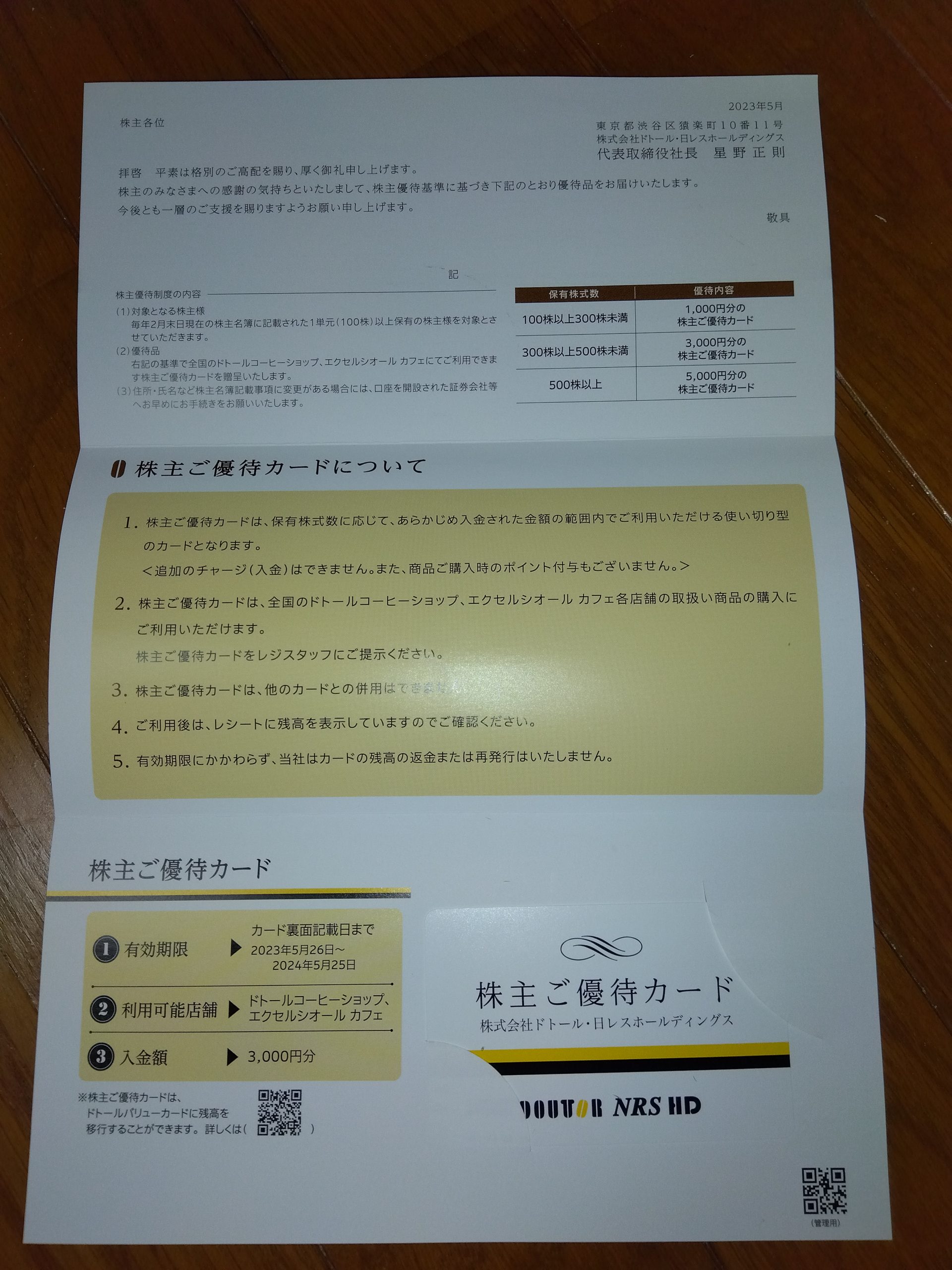 300株保有していますので、株主ご優待カード3,000円分を頂きました!!