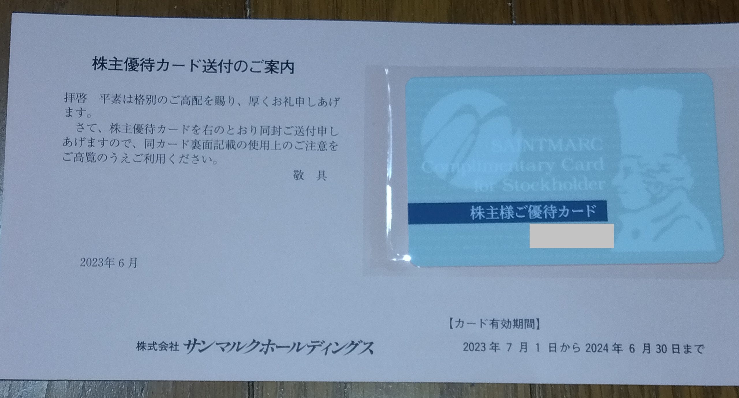 2023/6/12、株主優待の優待カードを頂きました!!