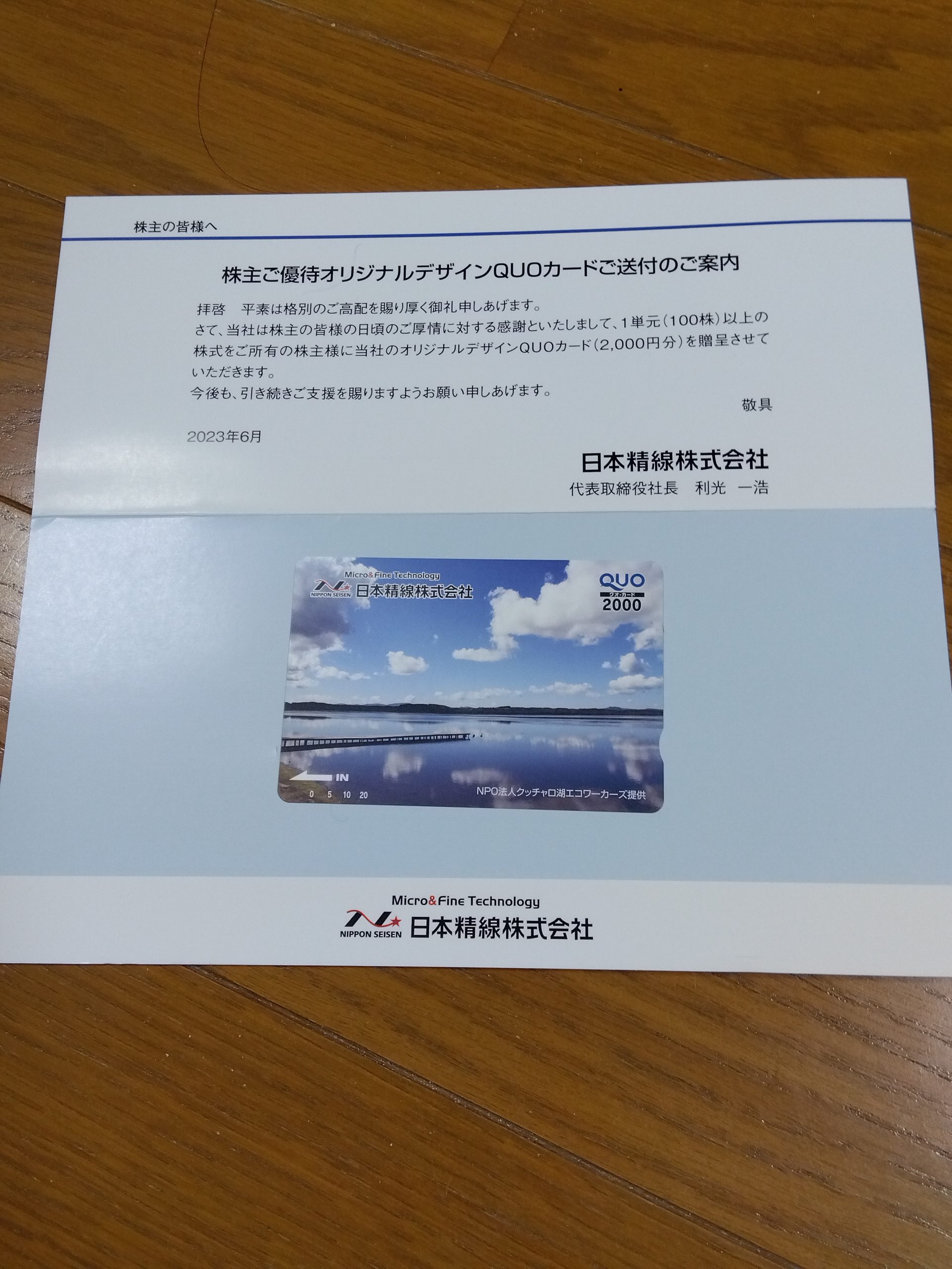 株主優待を頂きましたQUOカード【証券コード5659】【日本精線株式会社さん】 株主優待3月確定 X Facebook はてブ LINE コピー 2023.07.09 2023/7/3、QUOカード2,000円分を頂きました!! 100株以上の保有は、一律2,000円分になります。 日本精線株式会社さんありがとう!! 過去の配当情報はコチラ!!