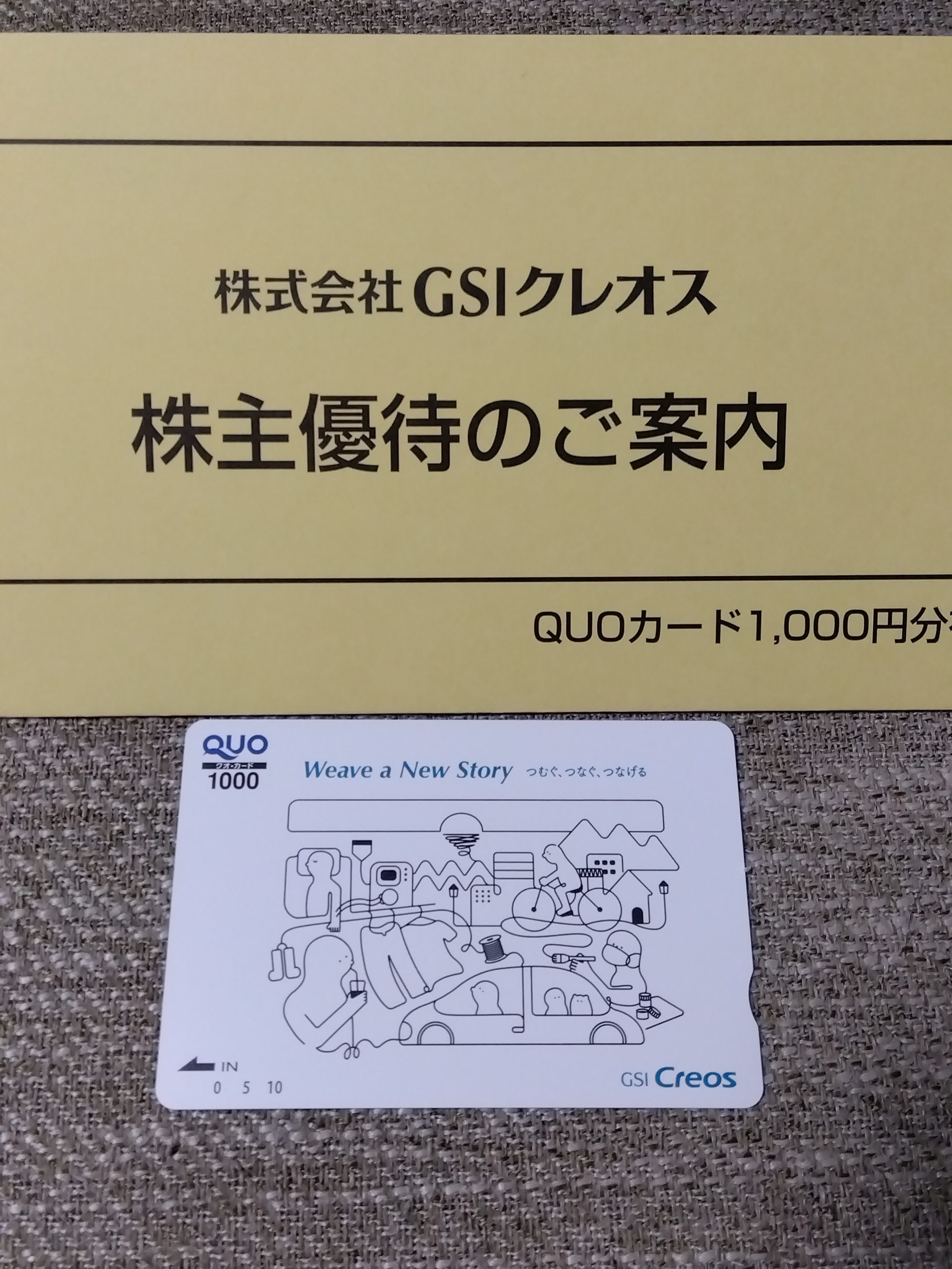 株主優待を頂きましたQUOカード【証券コード8101】【株式会社GSIクレオスさん】 株主優待9月確定 X Facebook はてブ LINE コピー 2023.12.13 2023/12/11、株主優待のQUOカード1,000円分を頂きました!! 今回で3回目のGETになり、1,000円分です。 株式会社GSIクレオスさんありがとう!! 過去の配当情報はコチラ!!
