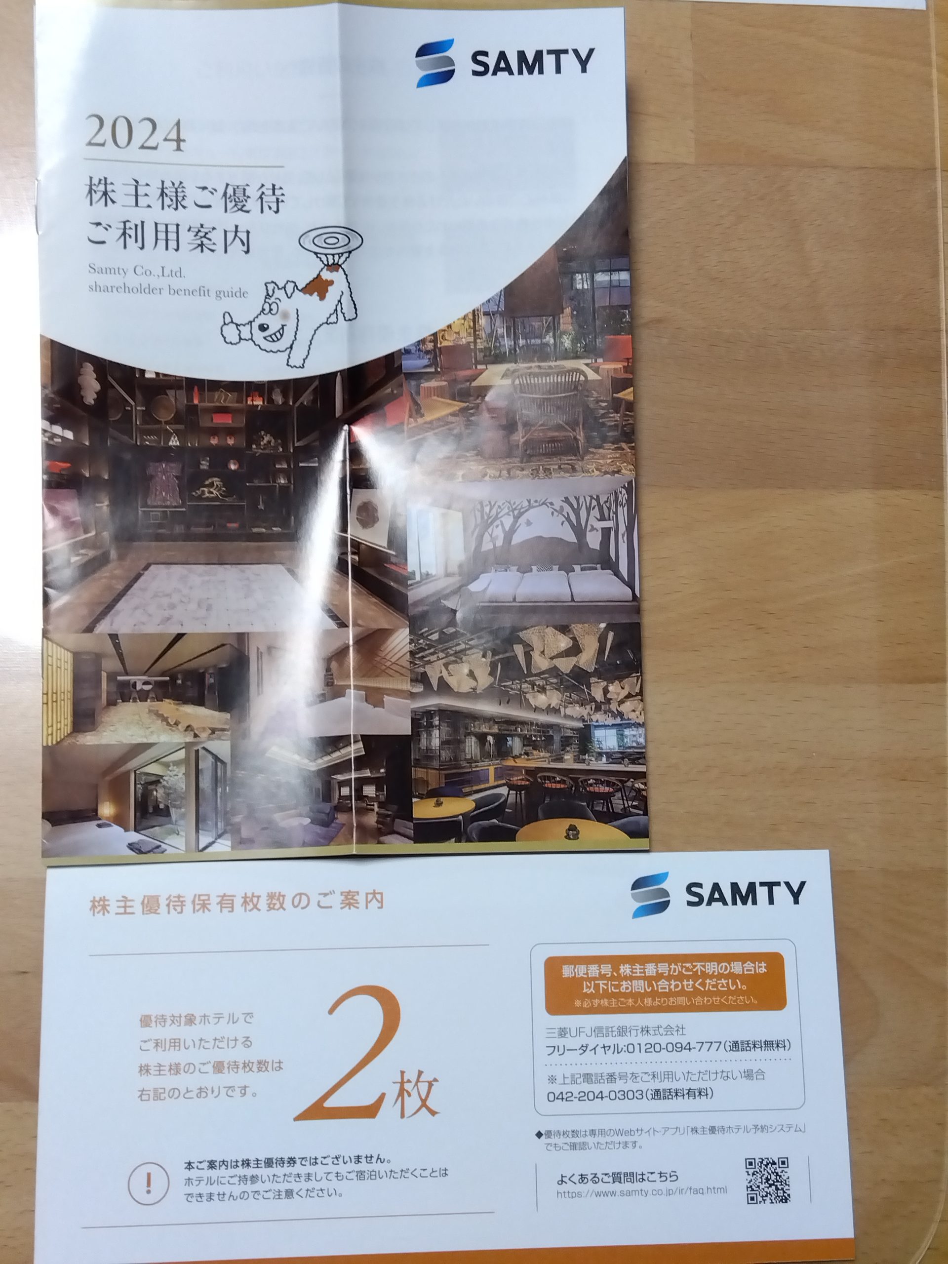 2024/3/1、株主優待のホテル共通ご優待券(2枚)を頂きました!!
