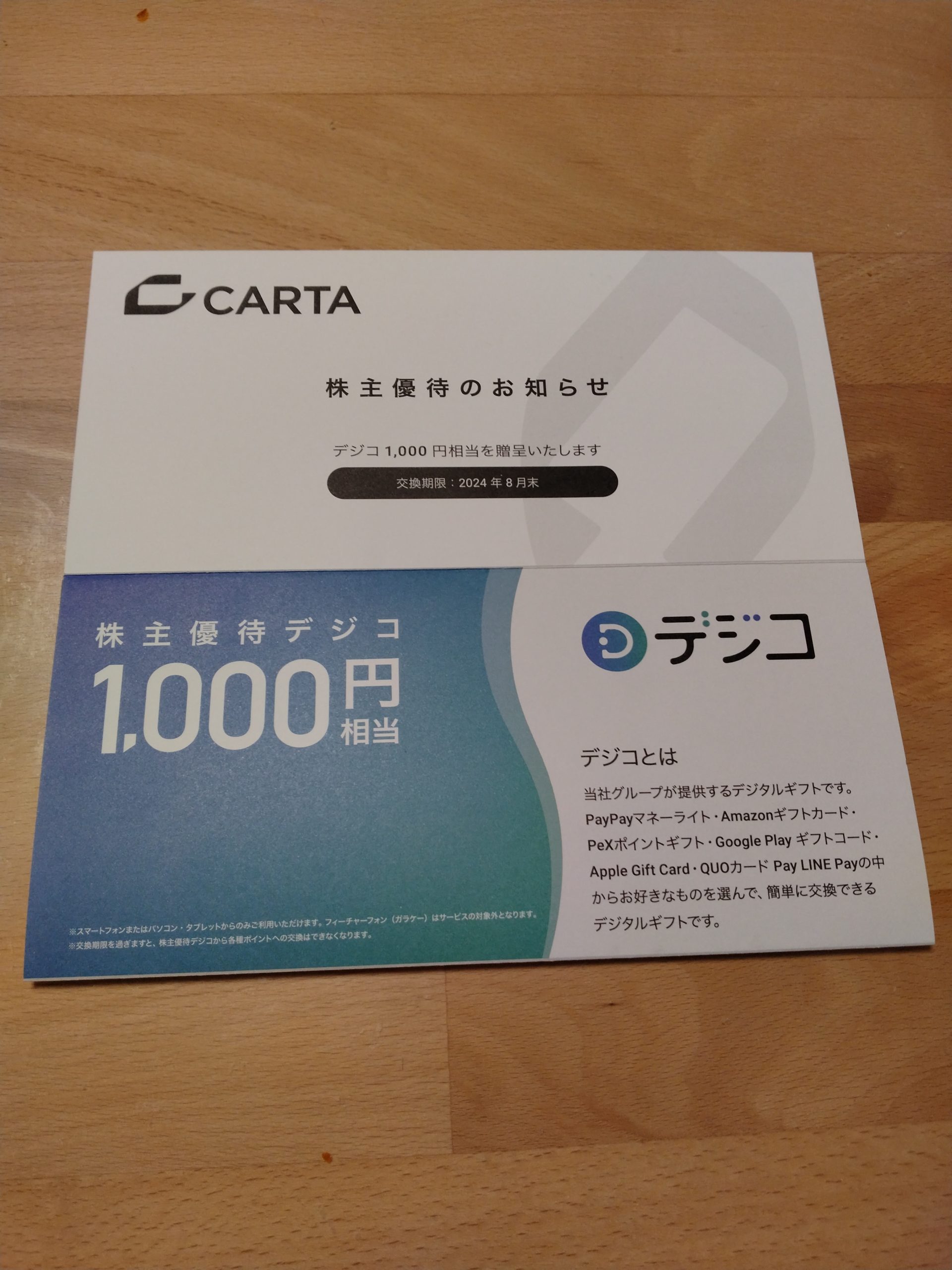 2024/3/11、株主優待の「株主優待のお知らせ」を頂きました!!