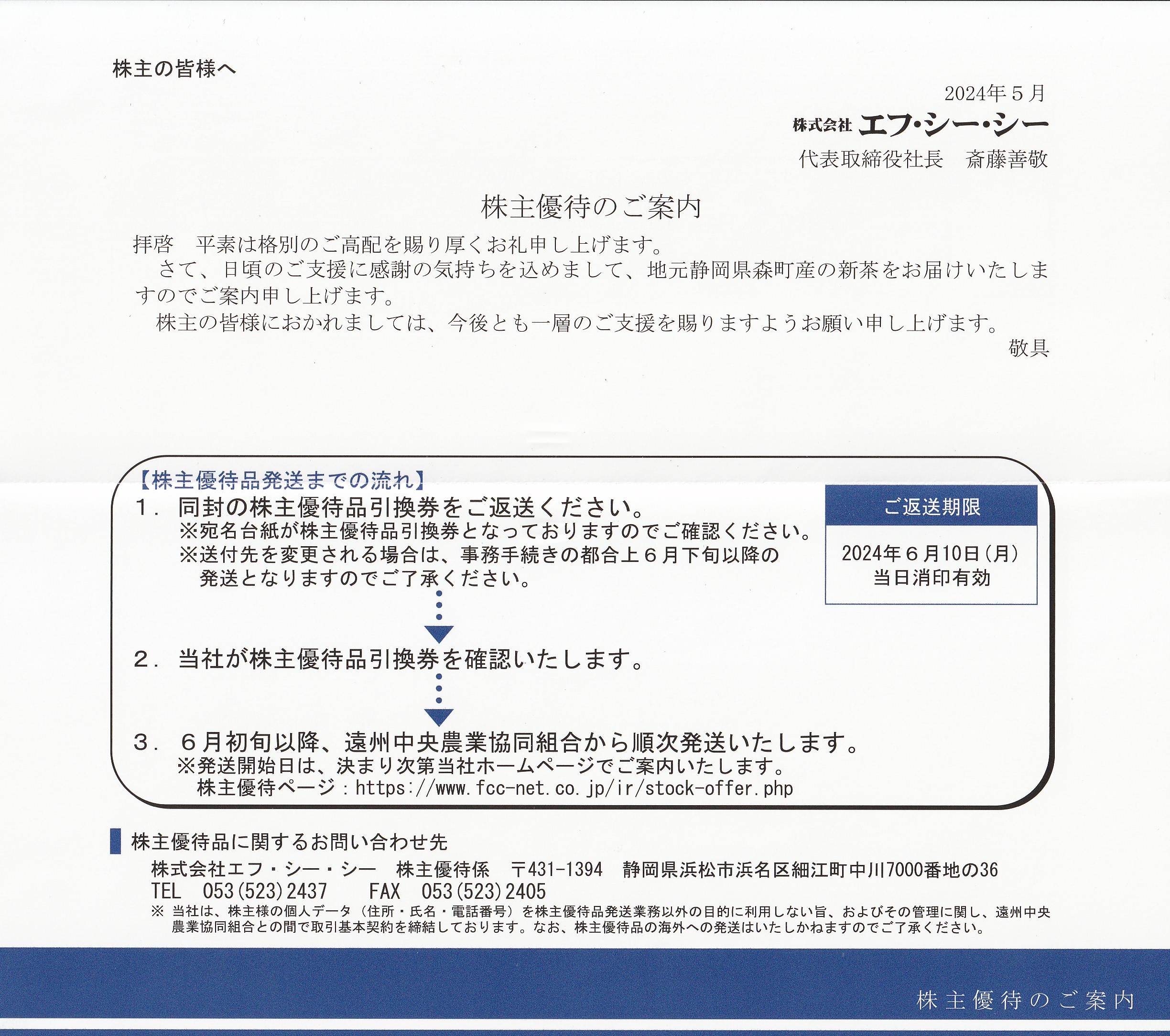 株主優待3月確定2024/5/15、株主優待のご案内を頂きました!!
