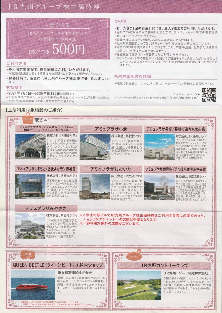 500株保有していますので、「お買物券2,500円分」と「1日乗車券5枚」を頂きました!!