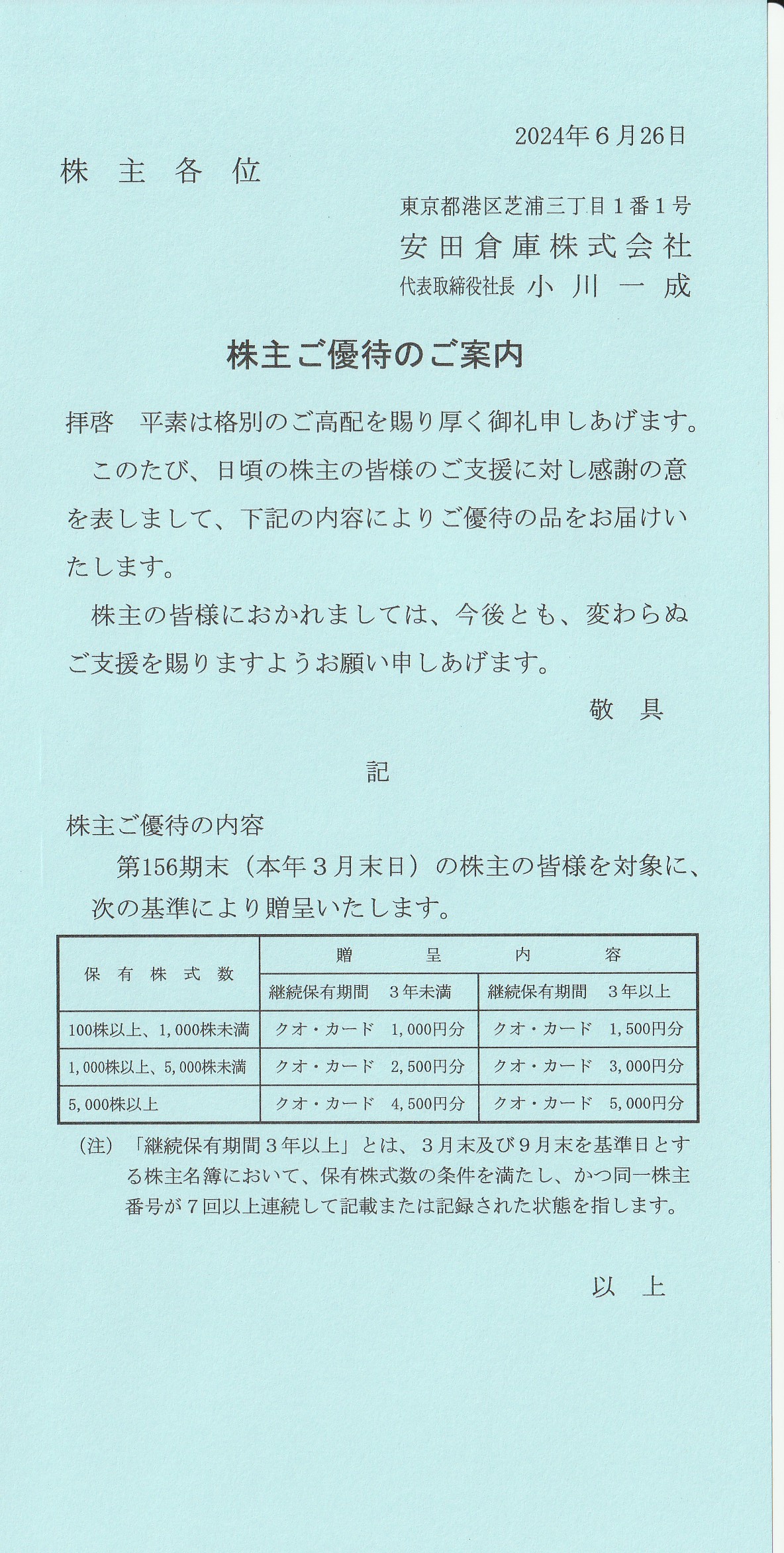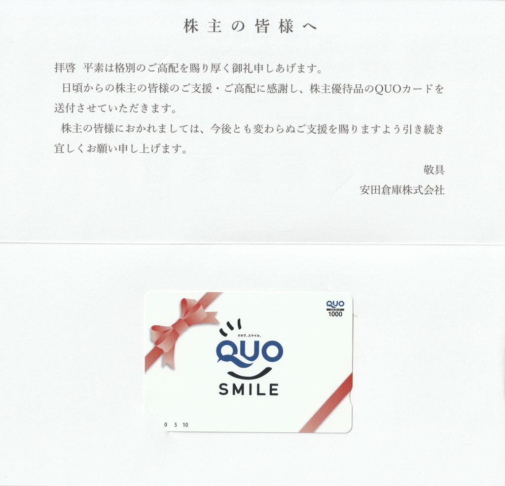 株主優待3月確定2024/6/28、株主優待のクオカードを頂きました!!