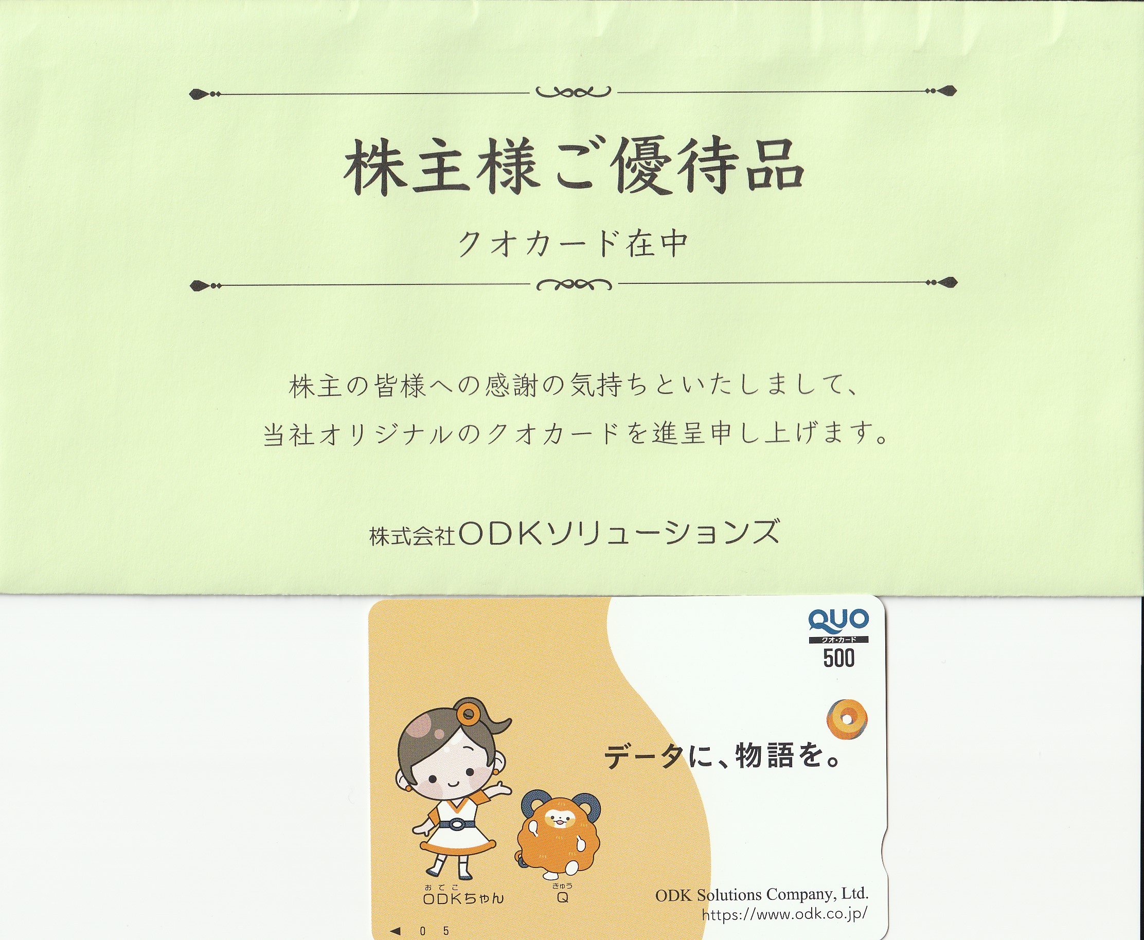 株主優待3月確定2024/7/1、株主優待のクオカード500円分を頂きました!!