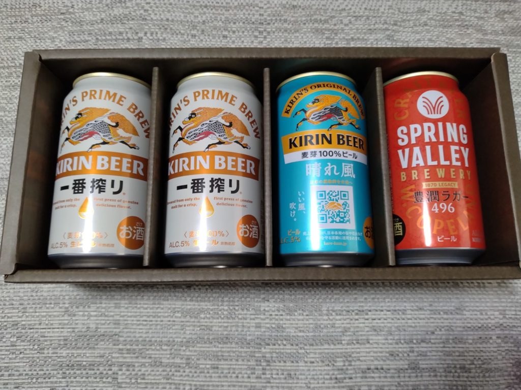 今回も、キリンビール詰め合わせセット(4本)にしますかね。