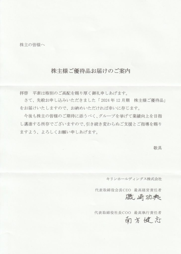 株主優待12月確定2025/3/11、株主優待の「株主様ご優待のご案内」を頂きました!!