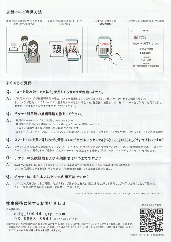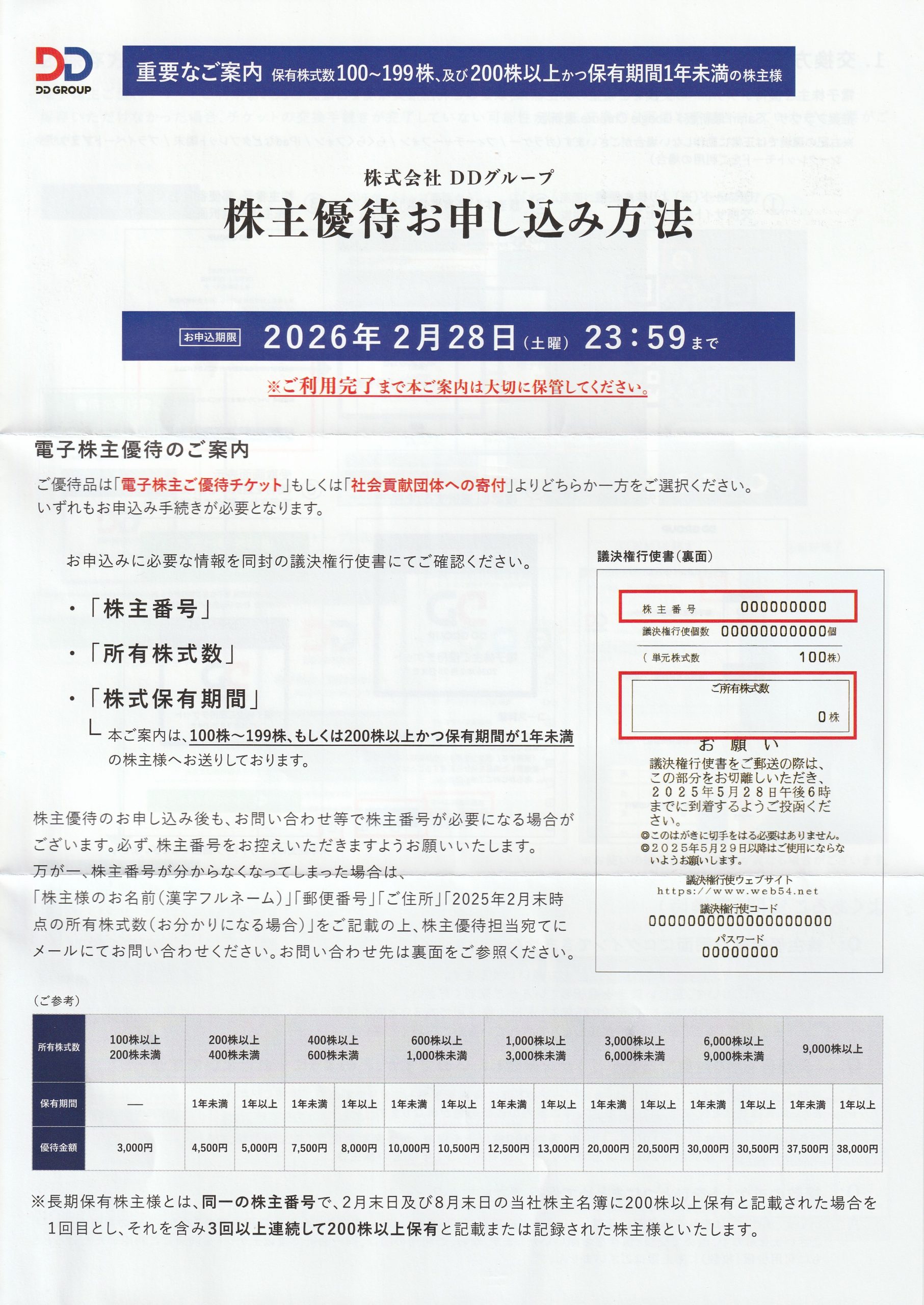 100株の保有なので、電子株主ご優待チケット(3,000円分)となります。