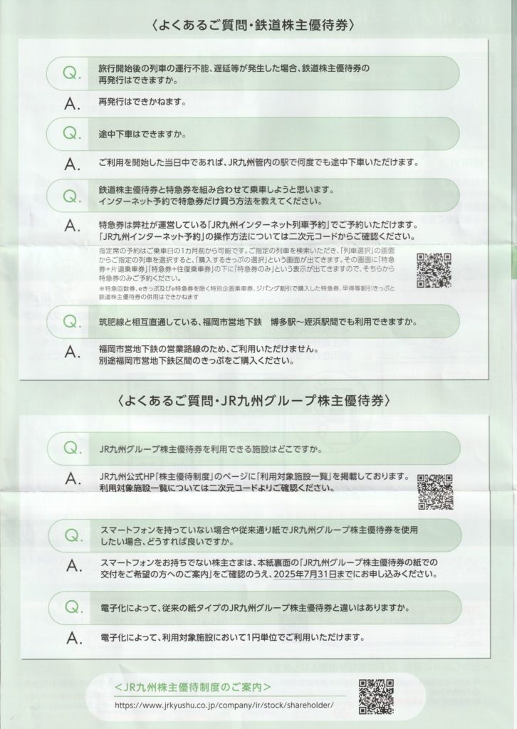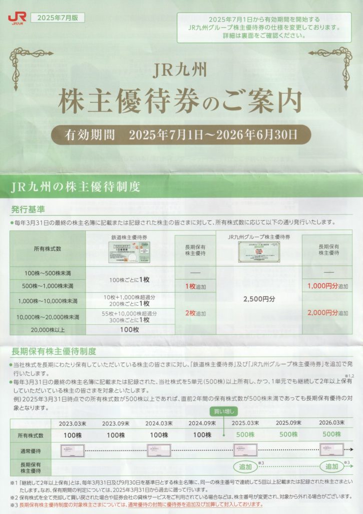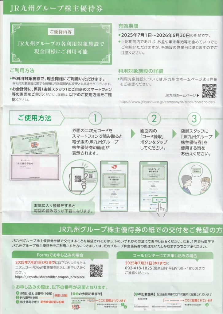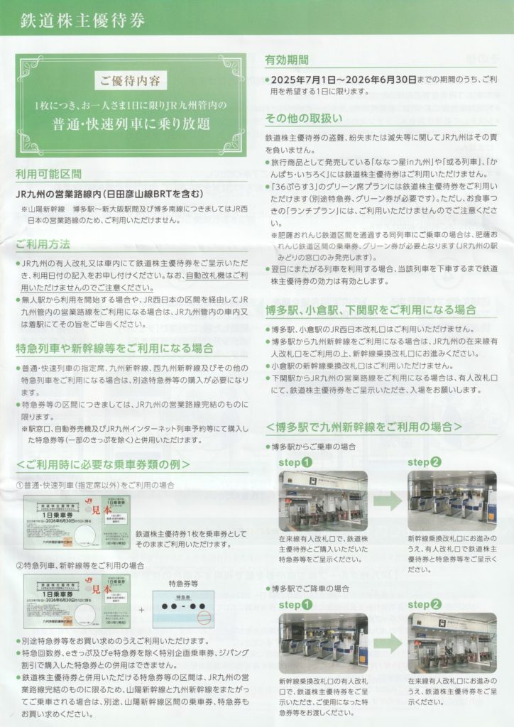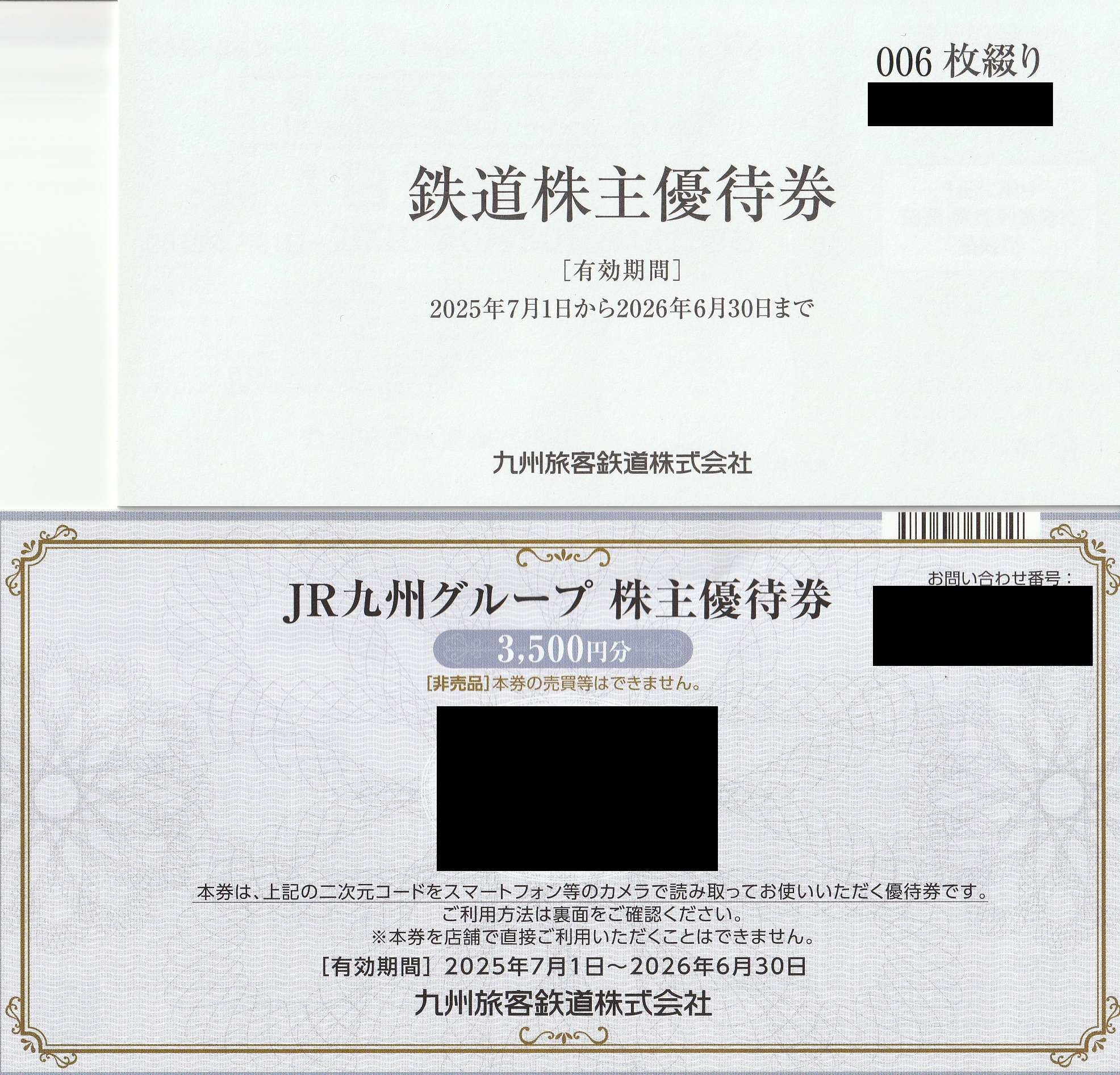 「JR九州グループ株主優待券3,500円分」と「1日乗車券6枚」を頂きました!!