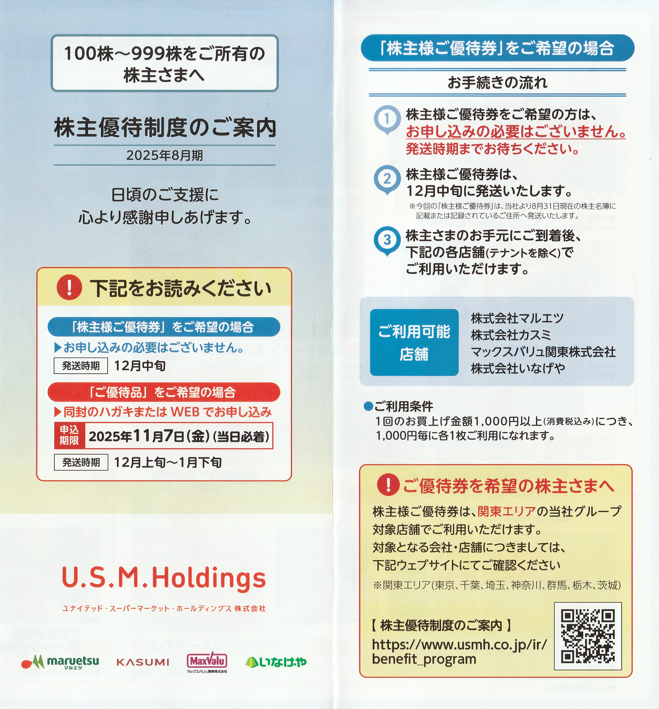2025/10/20だったかな、株主優待制度のご案内を頂きました!!
