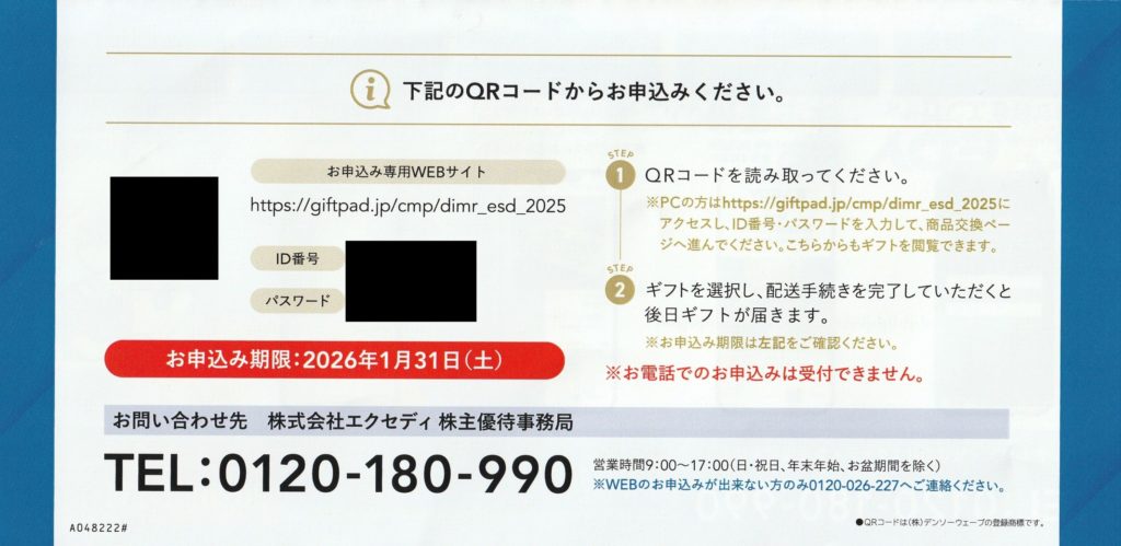 2025/11/28、株主優待のご案内(WEBカタログギフト)を頂きました!!