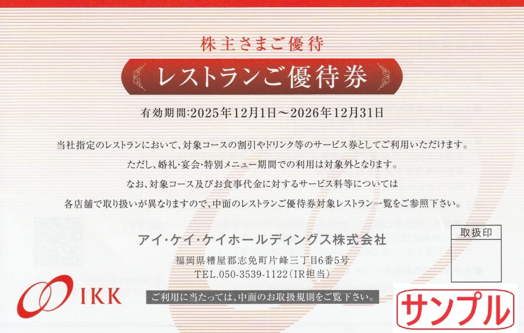株主優待の「優待品・レストランご優待券」ほかを頂きました!!