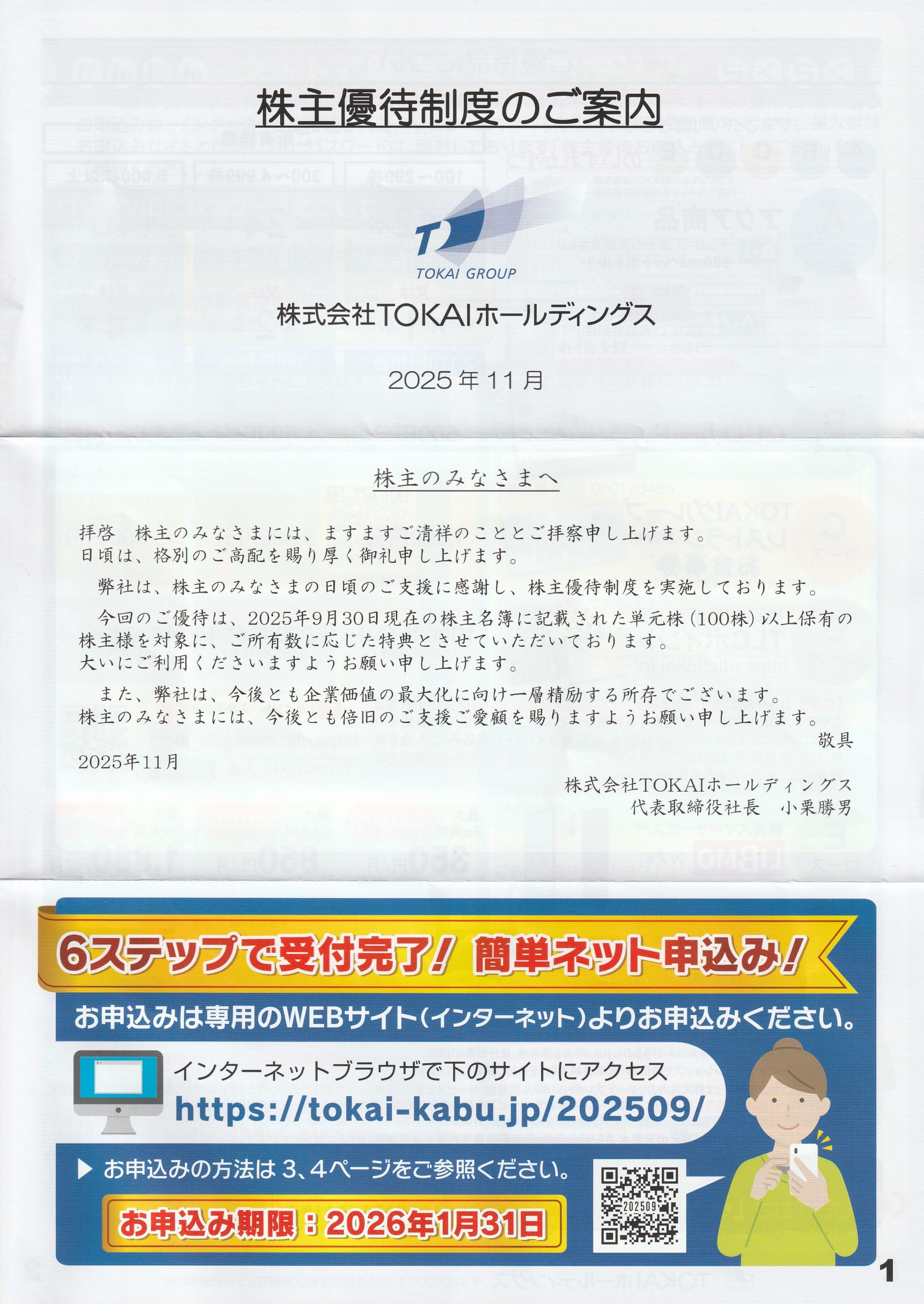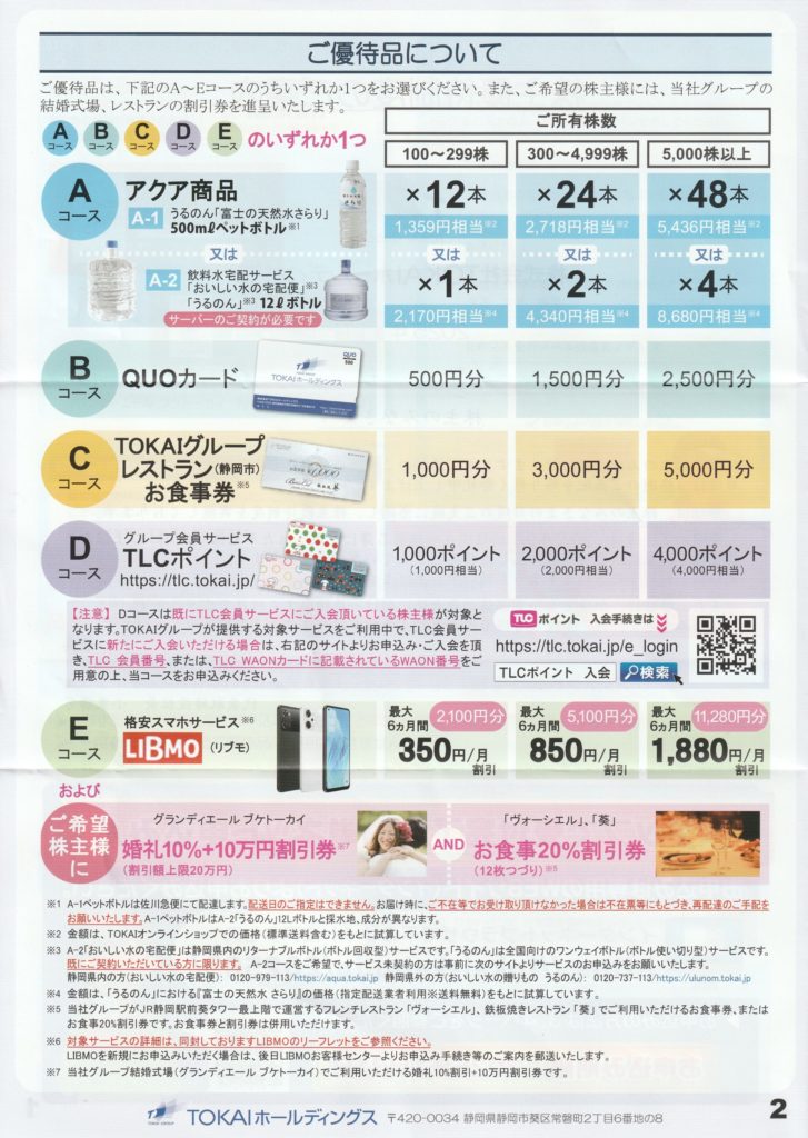 2025/12/2、株主優待制度のご案内を頂きました!!