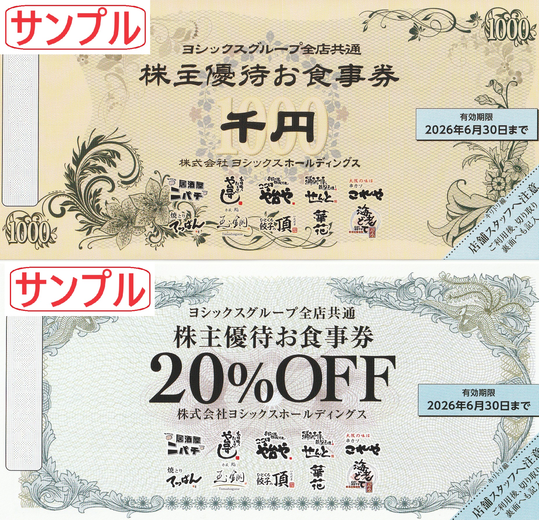 お食事割引券(20%割引券×10枚)となります。