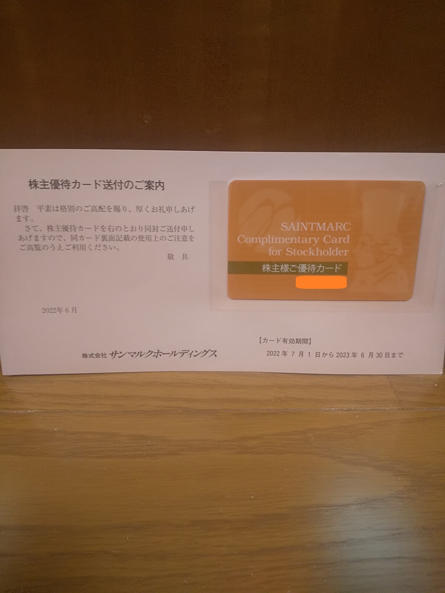 2022/6/13、株主優待の優待カードを頂きました!!