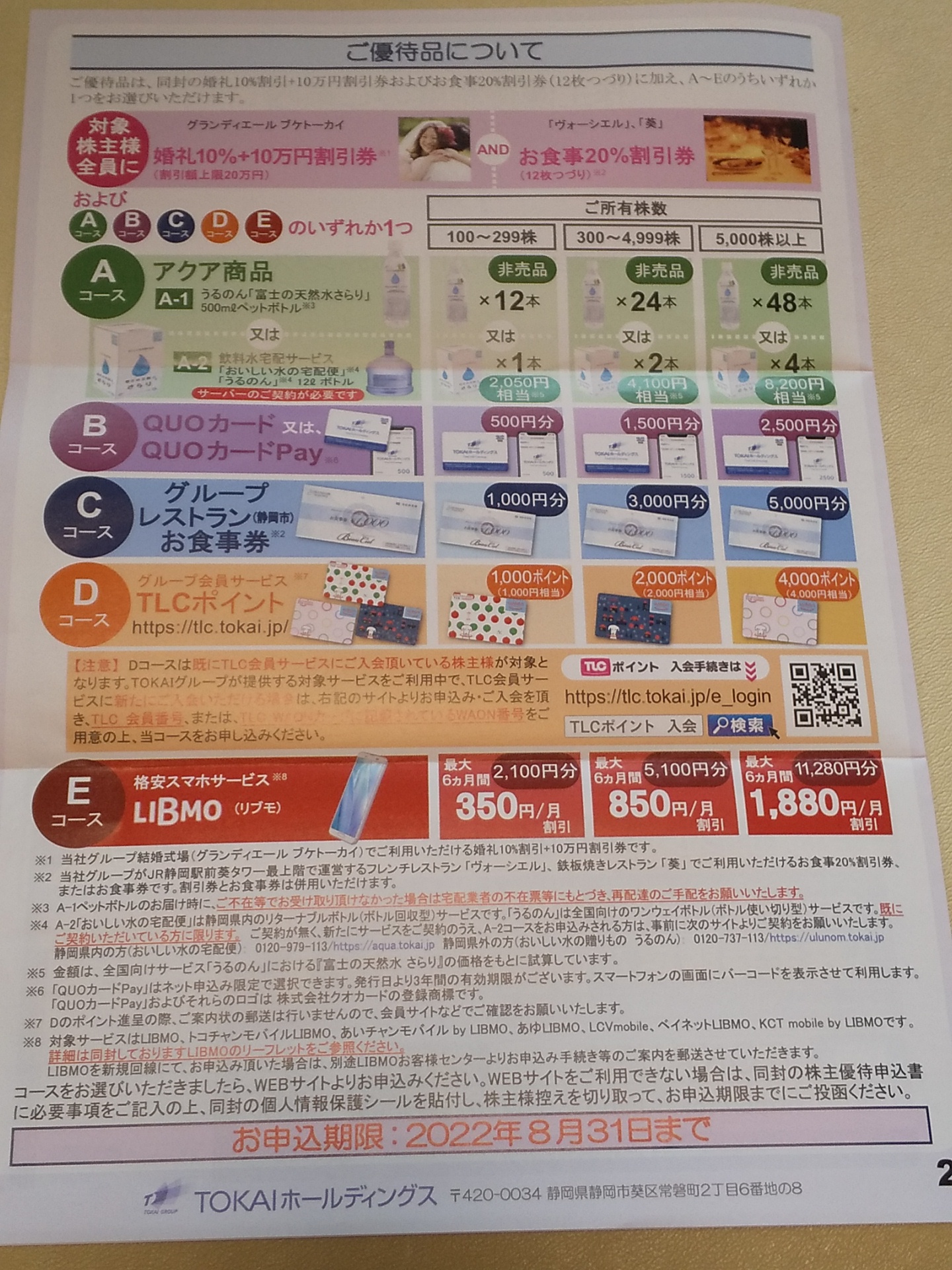2022/7/1、株主優待制度のご案内を頂きました!!