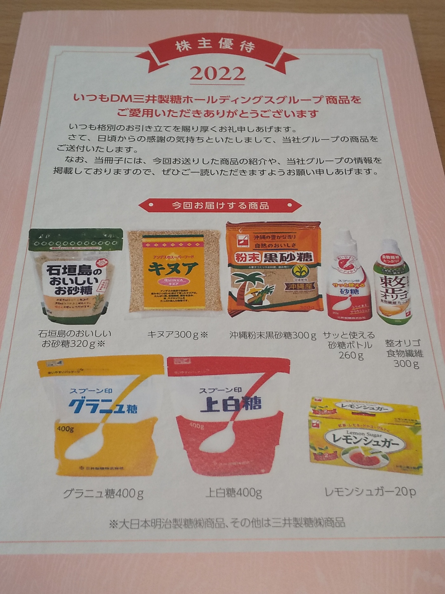 株主優待3月確定2022/7/20、お砂糖関係の詰合せ、3,000円相当分を頂きました!!