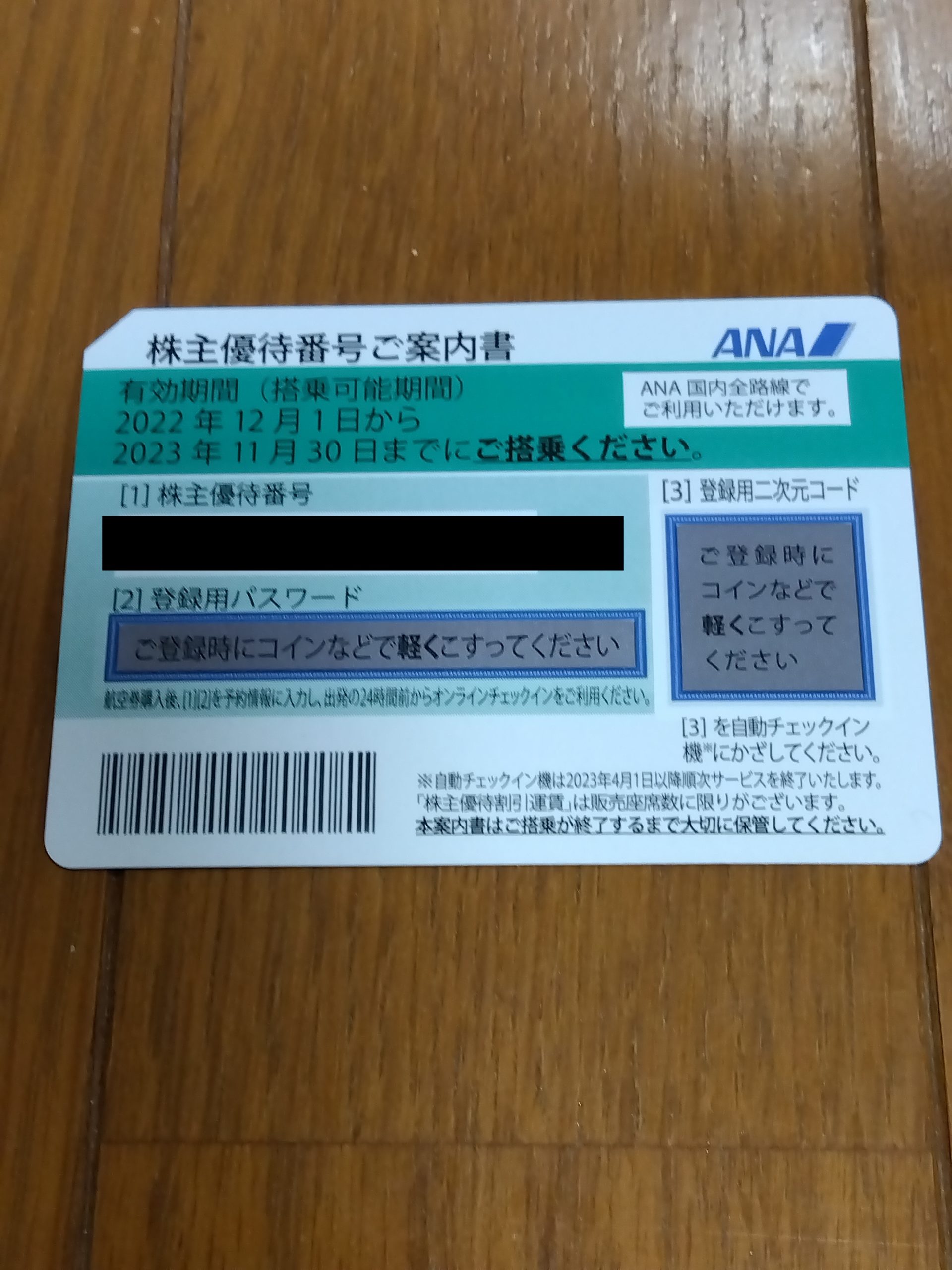 株主優待を頂きました株主優待番号ご案内書など【証券コード9202】【ANAホールディングス株式会社さん】 株主優待9月確定 X Facebook はてブ LINE コピー 2022.11.14 2022/11/14、株主優待(株主優待番号ご案内書など)を頂きました!! ANAホールディングス株式会社さんありがとう!! 兎にも角にも、早期に復配しますように・・・・