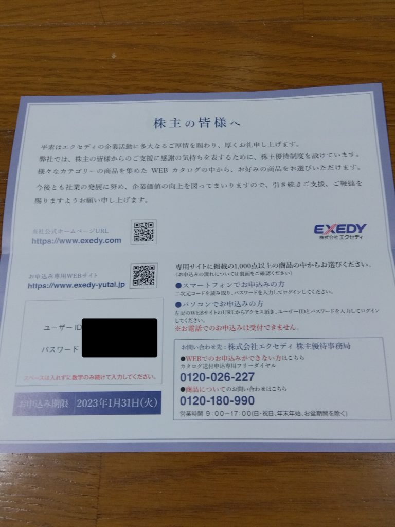 2022/11/29、株主優待(WEBカタログギフト3,000円相当分)を頂きました!!