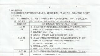 株主優待7月確定 株主優待制度についてのご案内を頂きました