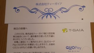 隠れ優待 隠れ株主優待を頂きましたQUOカードペイ【証券コード3738】【株式会社ティーガイアさん】 2022/8/2、QUOカードペイ500円分を頂きました!!議決権行使の隠れ優待のようです。保有株数・保有年数には無関係で一律500円分でしょうか。間違ってたらすみません・・・株式会社ティーガイアさんありがとう!!QUOカードペイは株主優待... 2022.08.02 隠れ優待