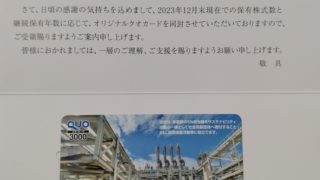 株主優待12月確定 株主優待を頂きました「QUOカード」