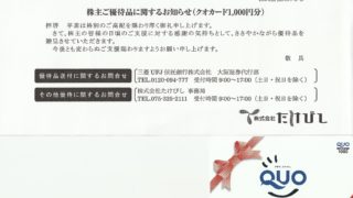 株主優待4月確定 株主優待を頂きました「優待品・レストランご優待券」