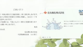 2025/6/4、株主優待のクオカード1,000円分を頂きました!!住友精化株式会社さんありがとう!!過去の配当情報はコチラ!!