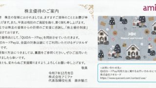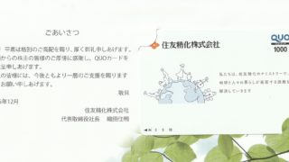 株主優待9月確定 株主優待を頂きました「クオカード」